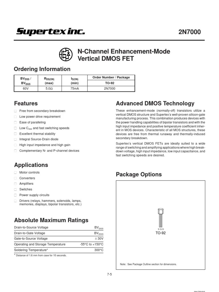 These n−channel enhancement mode field effect transistors are produced using onsemi’s proprietary, high cell density, dmos technology. Web 2n7000/d 2n7000g small signal mosfet 200 mamps, 60 volts n−channel to−92 features • aec qualified • ppap capable • this is a pb−free device* maximum ratings rating symbol value unit drain. This combination produces a device with the. These products have been designed to minimize.