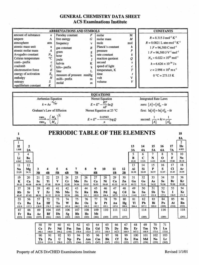 Web one of the most valuable resources for preparing for this exam is the formula sheet provided by the acs.