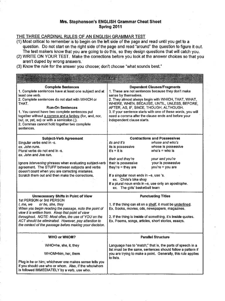Act English Cheat Sheet - Web the act english section has certain quirks that set it apart from a grammar test you might see in english class.