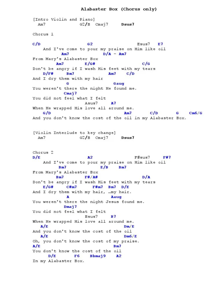 Alabaster Box Sheet Music - Download and print alabaster box sheet music for piano, vocal & guitar chords. Sheet music arranged for piano/vocal/guitar in g major (transposable). 2 parts • 9 pages • 03:58 • aug 23, 2021 • 696 views • 20 favorites. Alabaster box sheet music by cece winans. Web download the sheet music for alabaster box by cece winans, from the album believe for it (deluxe). This song was arranged by erik foster / daniel galbraith in the key of f, gb.