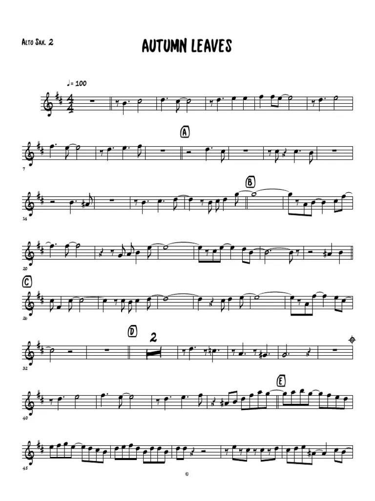 Autumn Leaves Alto Sax Sheet Music - Web download and print in pdf or midi free sheet music for autumn leaves by joseph kosma arranged by alain.