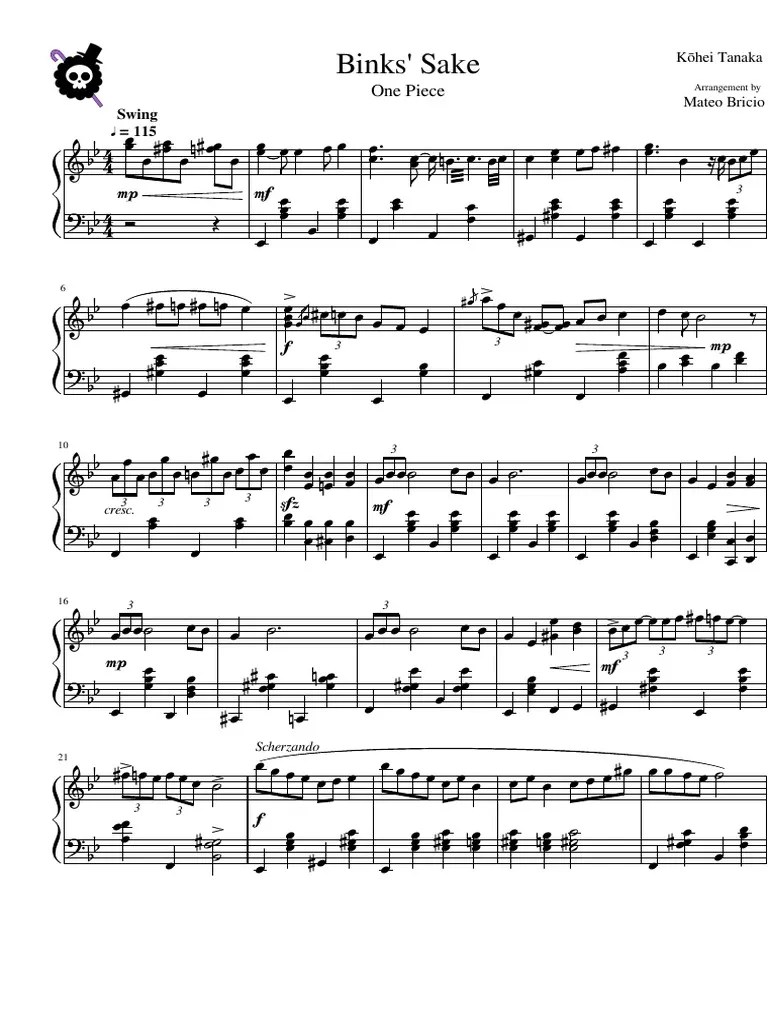 Binks Sake Piano Sheet - Brook's story is one of the reasons why one piece is so great.