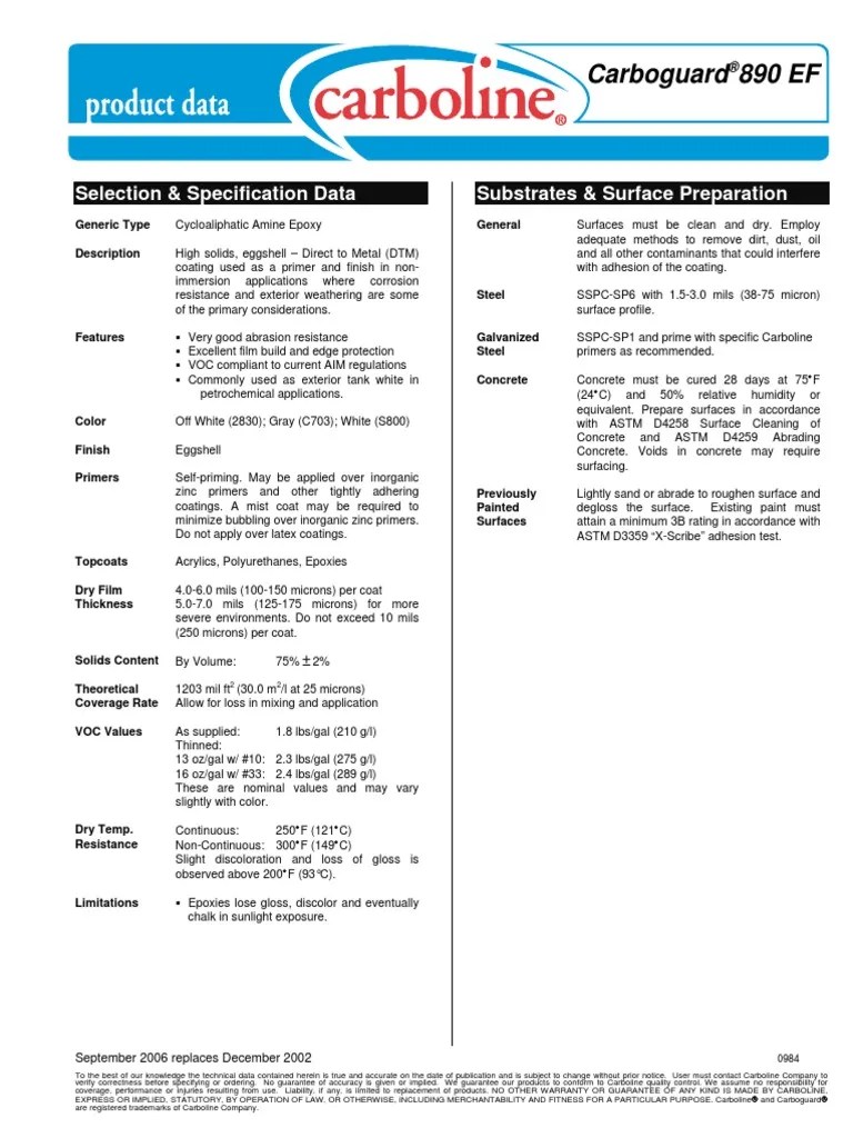 Web carboguard 891 product data sheet june 2020 891 page 1 of 4 selection & specification data generic type. Web selection & specification data. Ultra high solids epoxy that is designed as a liner for water, demineralized water, wastewater and. Web description features color finish primer dry film thickness solids content theoretical coverage rate voc values limitations.
