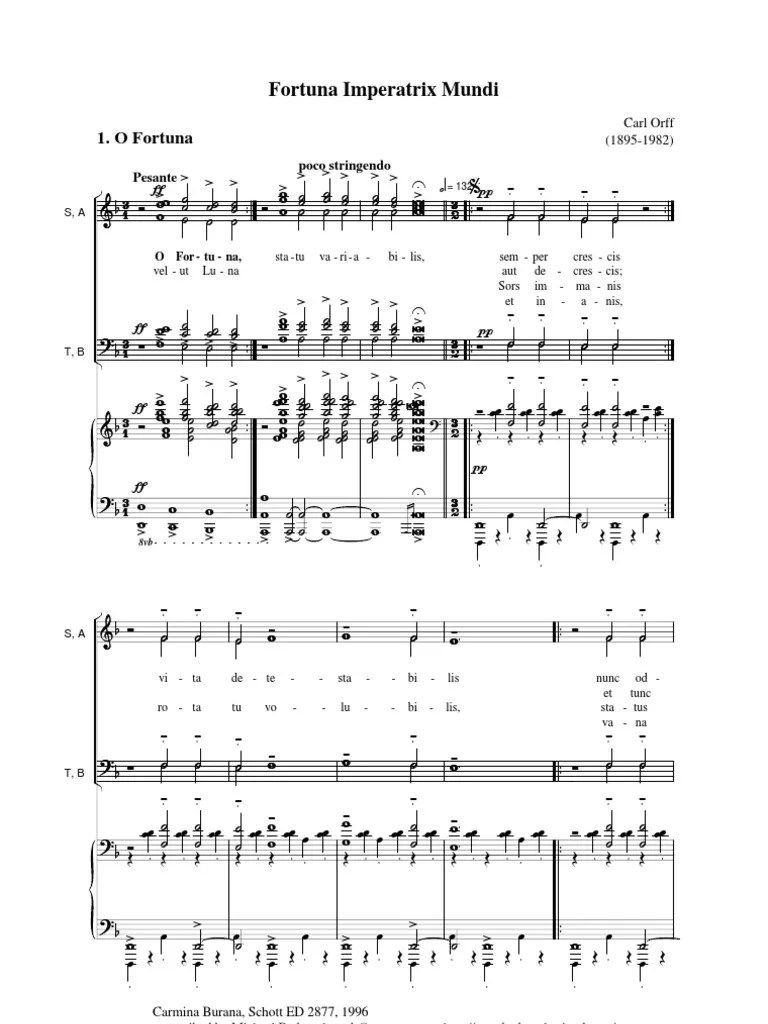 Share, download and print free carmina burana sheet music with the. Web 1 part • 1 page • 00:54 • dec 23, 2023 • 11 views. Web 1 next view full details orff, c: O fortuna from carmina burana composer: Carmina burana | buying sheet music and downloads from schott music.