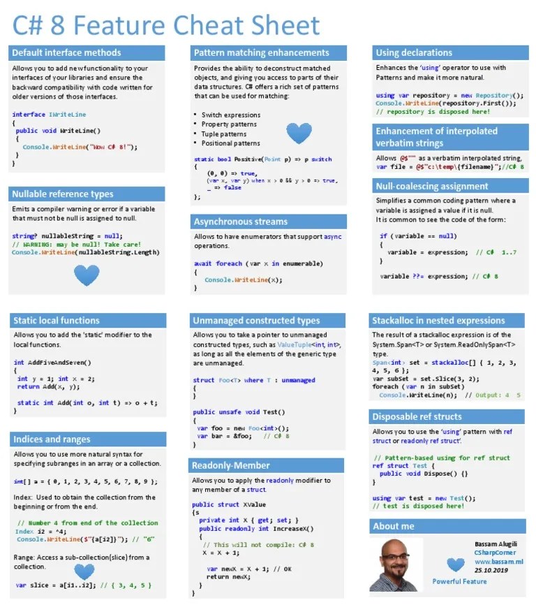 Csharp Cheat Sheet - It is a quick and easy way to. Web 13 contributors feedback in this article in this section related sections this section provides reference material. This cheat sheet is a valuable resource for anyone who wants to learn c#.