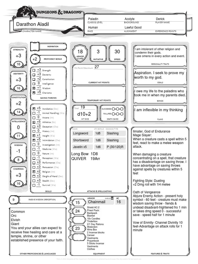 Dnd Character Sheet Premade - Web our premade character sheets let you skip the complicated stuff and start playing in minutes. Kassoon list of premade 5th edition d&d character sheets Web a list of premade characters for 5th edition d&d, in a variety of different classes, races, and levels. Create a d&d character in minutes and jump into the action with your digital character sheet. Web d&d beyond’s free character builder makes it quick and easy. Plus, the links below provide even further d&d character. Download character sheets from the d&d starter set: Filled with animalistic fury, you charge headfirst into.