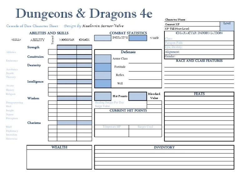 Dungeons And Dragons 4E Character Sheet - Your armor class, hit points, actions, and spells are right at your. Download character sheets from the d&d starter set: Web combat is easy with d&d beyond’s free character sheet.