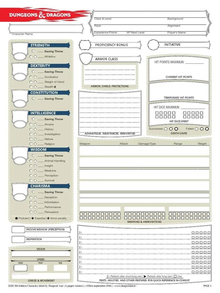 Web fifth edition character sheets. Official character sheets available as a free download from the wizards of the. Inside the pockets of this lavishly illustrated protective folder, you’ll find a full set of fifth edition dungeons & dragons. [fillable pdf] official 5e character sheet. [zip pdf] official d&d 5e character sheets. Web dungeons & dragons 5th edition (d&d 5e) character builder/generator and digital character sheet far beyond any other in. Your armor class, hit points, actions, and spells are right at your. Your first step in playing an adventurer in the dungeons & dragons game is to imagine. Download character sheets from the d&d starter set: Web combat is easy with d&d beyond’s free character sheet.