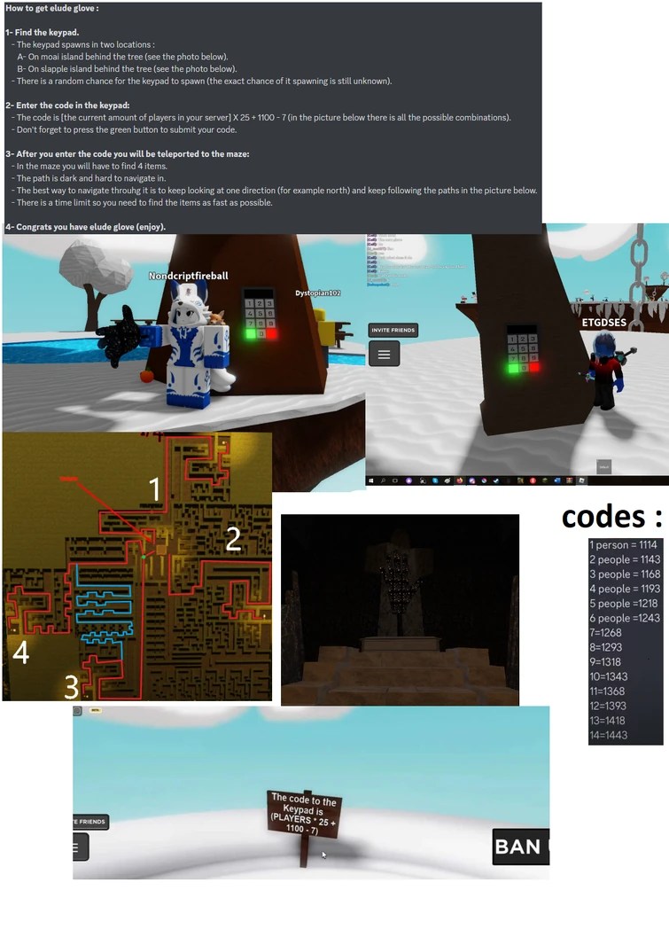 Web good cheat sheet for elude i found on the discord. Web here is a detailed guide for anyone struggling with obtaining the glove (all the relic guides are as if you were starting from spawn, follow the cheat. I didn’t create this, credits go to badatcoding#0139 on the discord. This requires a bit of a math to figure out and is based on the. Are these the exact locations where they spawn? Web for instance, if there are eight people playing in your current server the equation goes like this: You need to input the current. Web to enter the elude maze in slap battles, you need to enter a specific code into a hidden keypad.