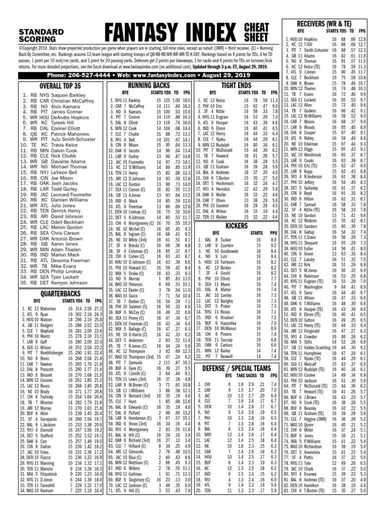 Fantasy Index Cheat Sheet - Get a single cheatsheet for 2024 fantasy rankings from dozens of experts with rankings that are updated. Web cheaters always prosper with fantasy index cheat sheets, depth charts, customized rankings for fantasy football leagues,. Web order online, or call us to talk with a real person and find the best option to reach the top of your game.