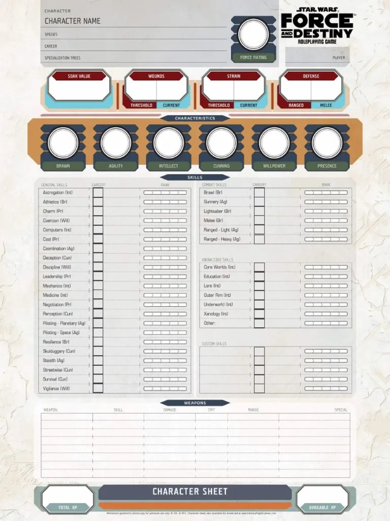Force And Destiny Character Sheet - Web find official and alternative character sheets for edge of the empire, age of rebellion and force and destiny. [ic thread] | [occ thread] | [ character sheets ] | [pbf rules, tips, hints and guides] this game is made for the following users:.