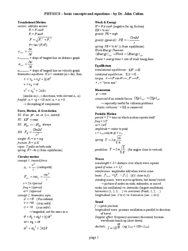 Definitions of variables and terms to make. Web the highest yield physics formulas and content. The values of physics constants.