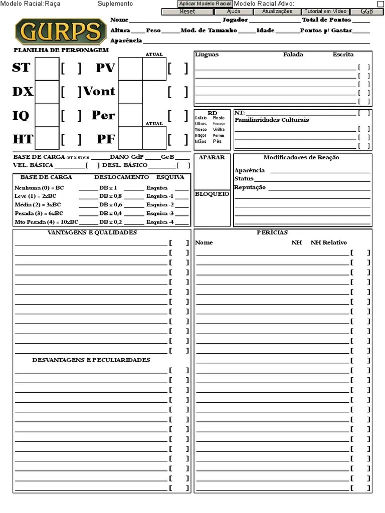 Web a fillable pdf version of the gurps 4th edition character sheet. Web gurps character sheet (gcs) is a standalone, interactive, character sheet editor that allows you to build characters.