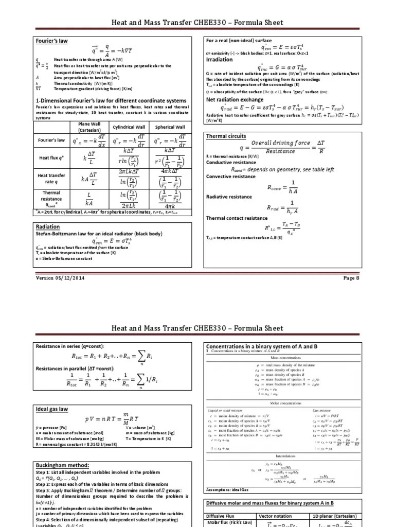 Heat Transfer Cheat Sheet - Web 2.051 introduction to heat transfer. Web heat transfer equation sheet. Mode of heat transfer equation. Web heat transfer the energy transfer interaction that occurs between pure thermal systems temperature the property of a system. Equation sheet (fall 2015) s.