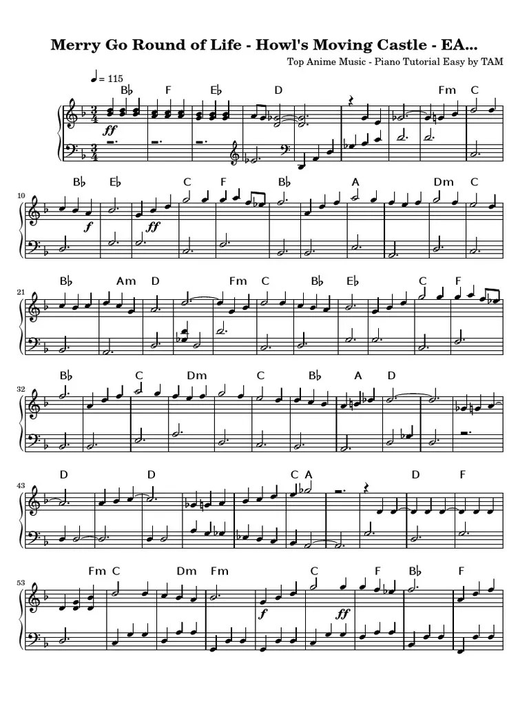 Howl's Moving Castle Merry Go Round Of Life Piano Sheet - Howl's moving castle piano tutorial & sheets. Web easy piano tutorial/how to play the song merry go round of life from howl's moving castle by joe hisaishi.🎼.
