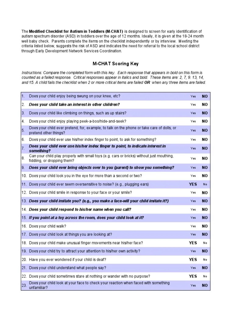 Mchat Scoring Sheet - For items 2, 5, and 12, “yes” indicates asd risk. For all items except 2, 5, and 12, the response “no” indicates asd risk; However, items 2, 5, and 12 are reverse. Web the current recommended scoring algorithm is as follows: If child is younger than 24 mos, screen again at 24 mos (or after 3.