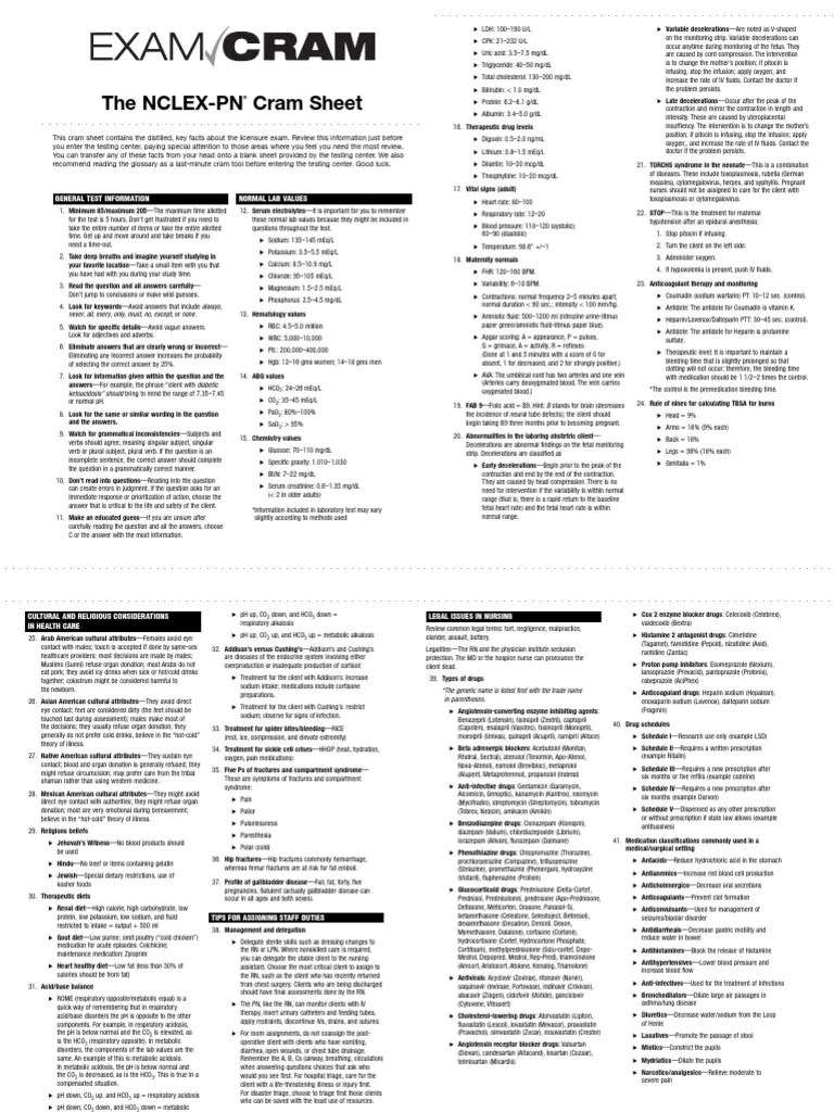 Nclex Pn Cram Sheet - Web nclex cram sheet 1. Lab values basic metabolic panel (bmp) sodium (na):