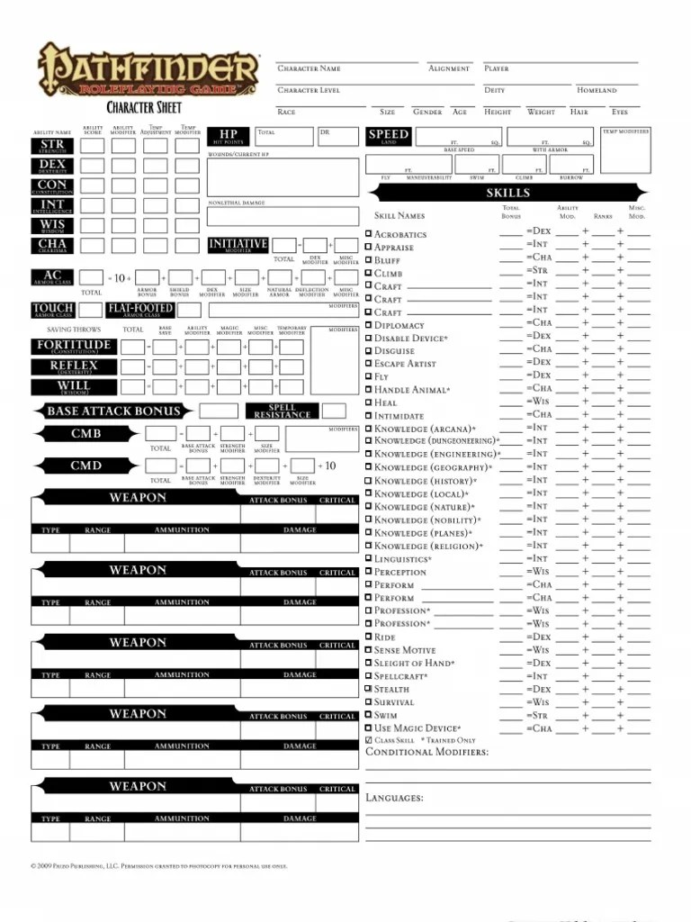 Web character sheets can be printed on paper and stored in a folder for easy transporting. Players can also use an online character. Web a complete set of character sheets covering hundreds of classes, along with familiars, spell books, npcs and map templates. Web pathfinder roleplaying game sheets pathfinder roleplaying game core rulebook. Web 1e resources check out this 1e ultimate character sheet i made in google sheets!