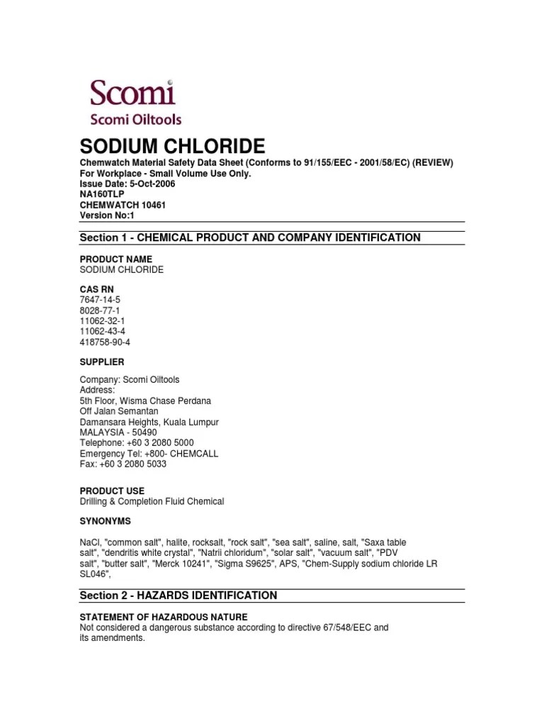 Safety Data Sheet For Sodium Chloride - Web 7 rows sodium chloride ld50 = 3 g/kg ( rat )ld50 > 10000 mg/kg ( rabbit )lc50 > 42 mg/l ( rat ) 1 h (b).