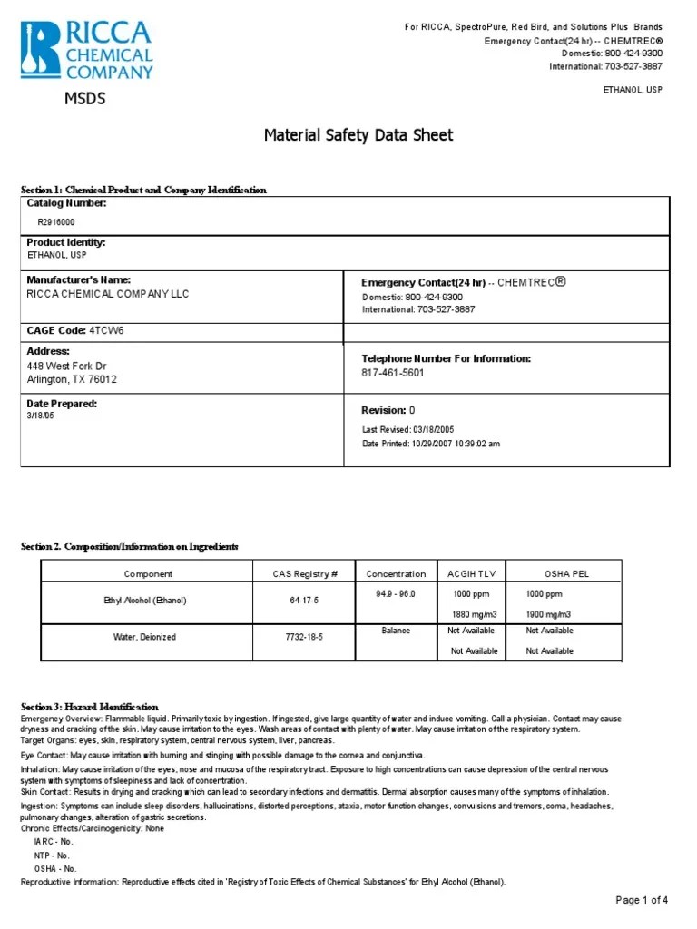 Sds Sheet For Ethanol - Identification of the substance/mixture and of the company/undertaking 1.1 product. Web product name ethanol, anhydrous (histological) cat no. Ethanol,ethyl alcohol relevant identified uses of the substance or.