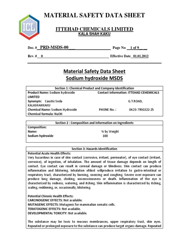 Sds Sheet For Sodium Hydroxide - Sodium hydroxide product number : Web 3 rows product name : According to us regulation 29 cfr 1910.1200 (hazcom 2012) 1.