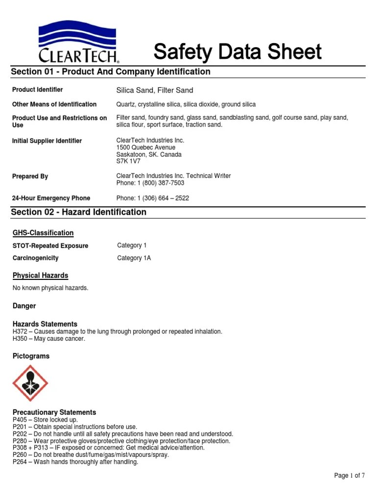 Silicon Dioxide Safety Data Sheet - Web 3.1 substances synonyms : Ac437151000 cas no synonyms recommended use. Web material safety data sheet or sds for silicon dioxide 113126 from merck for download or viewing in the browser. 1907/2006 version 6.3 revision date 27.12.2021 print date 09.12.2023 section. Web safety data sheet according to regulation (ec) no.