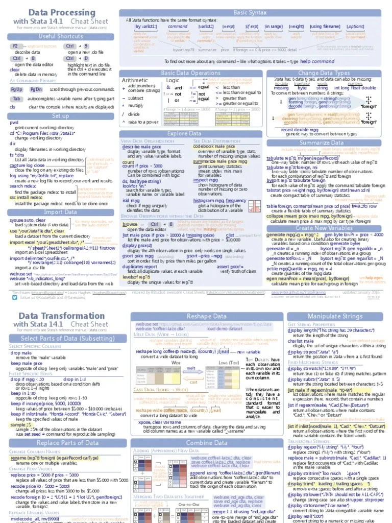 Web look no further than these excellent cheat sheets by data practitioners dr. Download all stata 15 cheatsheets. Cheat sheets on data wrangling, analysis, and visualization in stata 14. Fundamental commands in stata to.