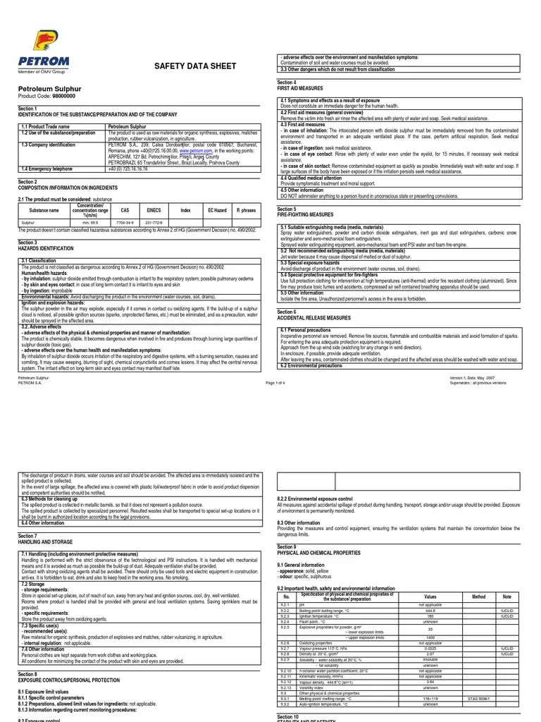 Web safety data sheet material name: Web sulphur safety data sheet section 1.