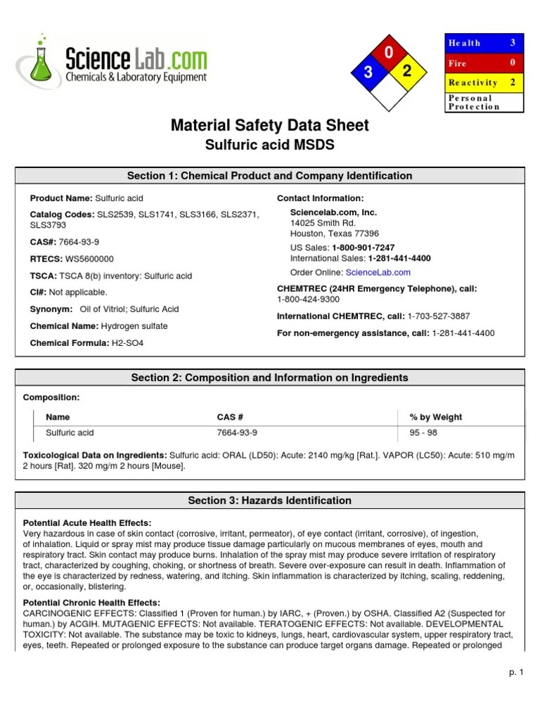 Sulfuric Acid Msds Sheet - Material safety data sheet or sds for sulfuric acid 98% 112080 from merck. Web safety data sheet for sulfuric acid 98% 112080. Sulfuric acid product number :
