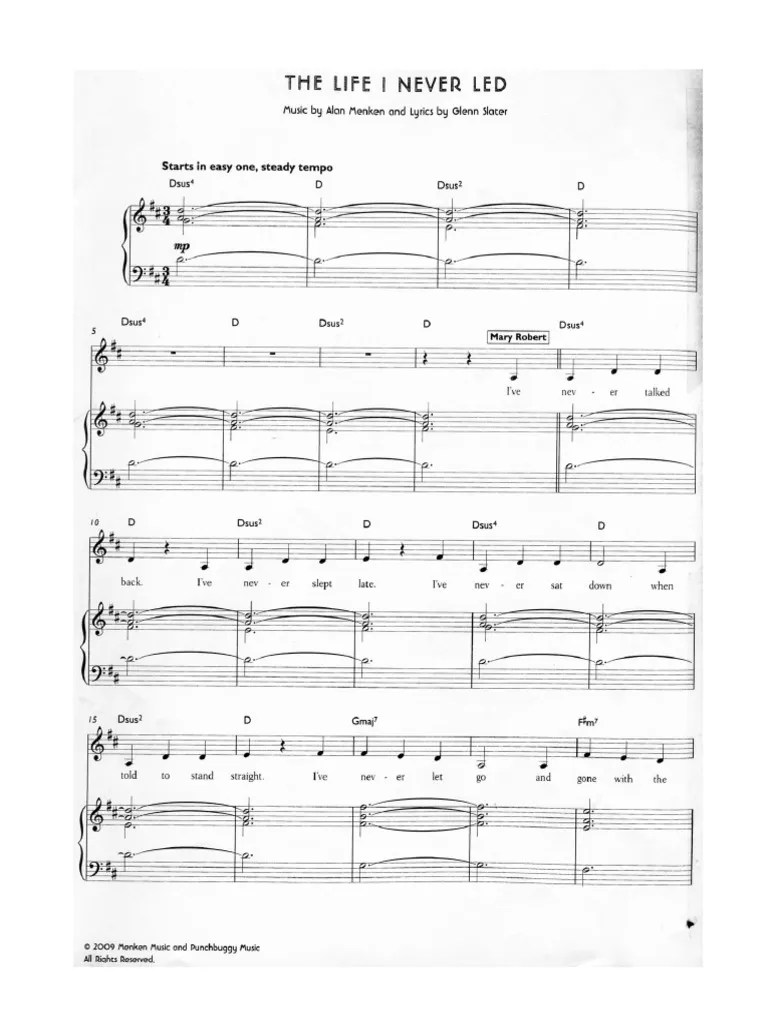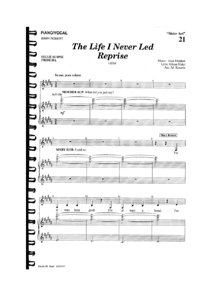The Life I Never Led Sheet Music - 2 parts • 10 pages • 05:55 • feb 16, 2022 • 275 views • 2 favorites. Web spyrou kyprianou 84, 4004 limassol, cyprus. Web the life i never led is a sister act, richard walters, glenn slater (also known as evan), alan menken (alan irwin menken). , download and print in pdf or midi free sheet music for the life i. Web the life 1 never led sister act music: Web find sheet music for \the life i never led\ from sister act (the musical) in various arrangements and genres. Glenn slater [116/09] cue [mary robert]: