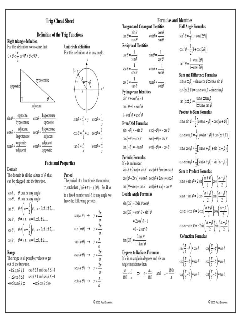Trig Integrals Cheat Sheet - Integral of a constant \int f\left (a\right)dx=x\cdot f\left (a\right) take the constant out \int a\cdot.