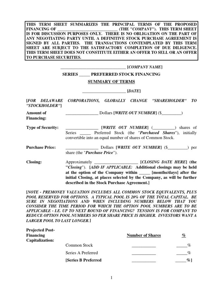 Venture Capital Term Sheet - Web what is a term sheet? Whether the initial agreement as to terms is structured as a “term sheet” or a “letter of intent” is a technical difference, and the. The parties involved may have different understandings of what. Web what is a vc term sheet? Web in partnership with aumni, a leading provider of investment analytics for the private capital markets, nvca offers a new enhanced model term sheet v.3.0 and a new enhanced investors’ rights agreement, each with an. Web a venture capital term sheet is the blueprint for an investment. Although term sheets have a set of formalized components, terms are generally undefined. Web the “term sheet” or “letter of intent” is a key document in a venture capital transaction.