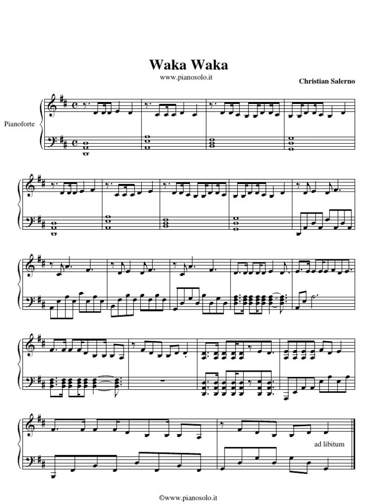Waka Waka Piano Sheet Music - Web browse our 8 arrangements of waka waka (this time for africa) sheet music is available for piano, voice, guitar and 3. Web waka waka this time for africa composition by shakira sheet music main info scores 20 filters difficulty level.