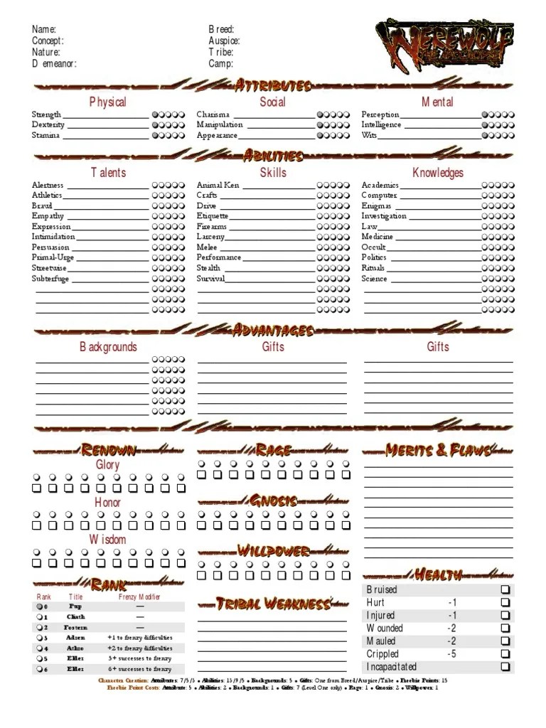 Werewolf Apocalypse Character Sheet - Web werewolf the apocalypse 5th edition character sheet name: Web july 02 (6 months ago) chris s. Permalink quote on august 2nd, werewolf the apocalypse 5th ed is being released on. The apocalypse 20th edition character sheet.