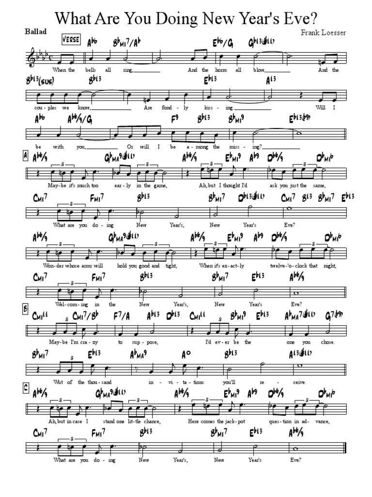 What Are You Doing New Year's Eve Lead Sheet - This is a vocal lead sheet for what are you doing. (lead sheet with lyrics ) on the piano. Our lesson is an easy way to see. Web learn how to play what are you doing new year's eve? Published by namaky music, llc (a0.910957). Web namaky music, llc #5993811. Web browse our 26 arrangements of what are you doing new year's eve? sheet music is available for piano, voice, guitar and 13.