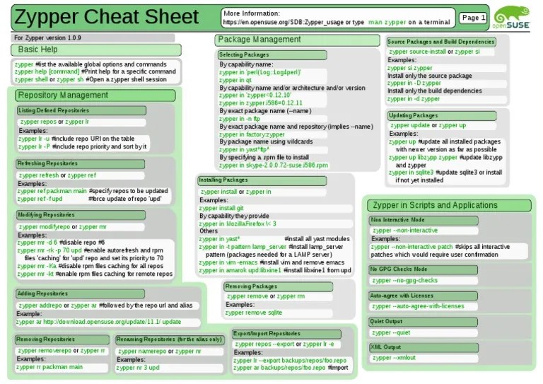 Zypper Cheat Sheet - Web zypper in 'zypper<0.12.10' zypper in zypper.i586=0.12.11.